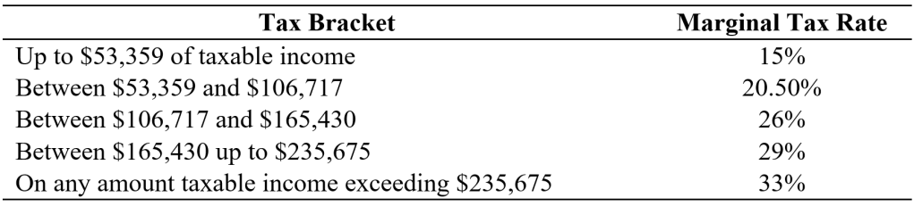 Table: Canadian Federal Tax Brackets, 2023 (Fidelity, 2023)