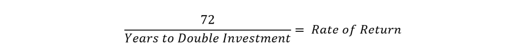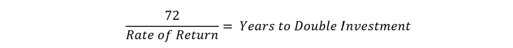 The Rule of 72 is a simple formula used to estimate how many years it will take an investment to double in value, OR the rate of return required to double the investment value in a known period of time (Kenton, 2025).